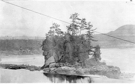 C’est en effet en 1916 qu’on a terminé de réassembler le rocher sur la terre ferme. À l’époque, la roche dont la forme s’apparente au visage d’une vieille amérindienne était assise au milieu des chutes de la rivière Saint-Maurice, sur une île.