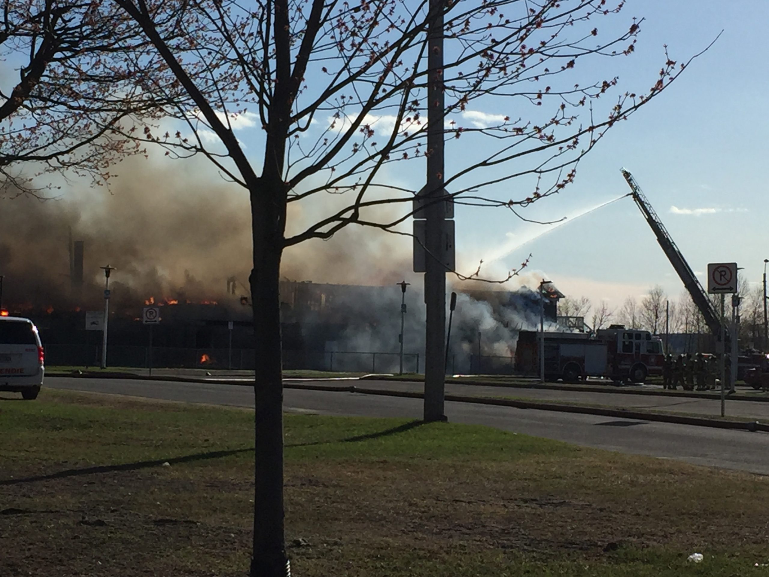 Le Service de sécurité incendie de la Ville a reçu un premier signalement vers 17h15. En arrivant sur les lieux, les pompiers ont rapidement sécurisé quatre cylindres de 400 livres de propane chacun. Les équipes d’Hydro-Québec ont également été mises à contribution puisque des fils étaient tombés sur le sol.