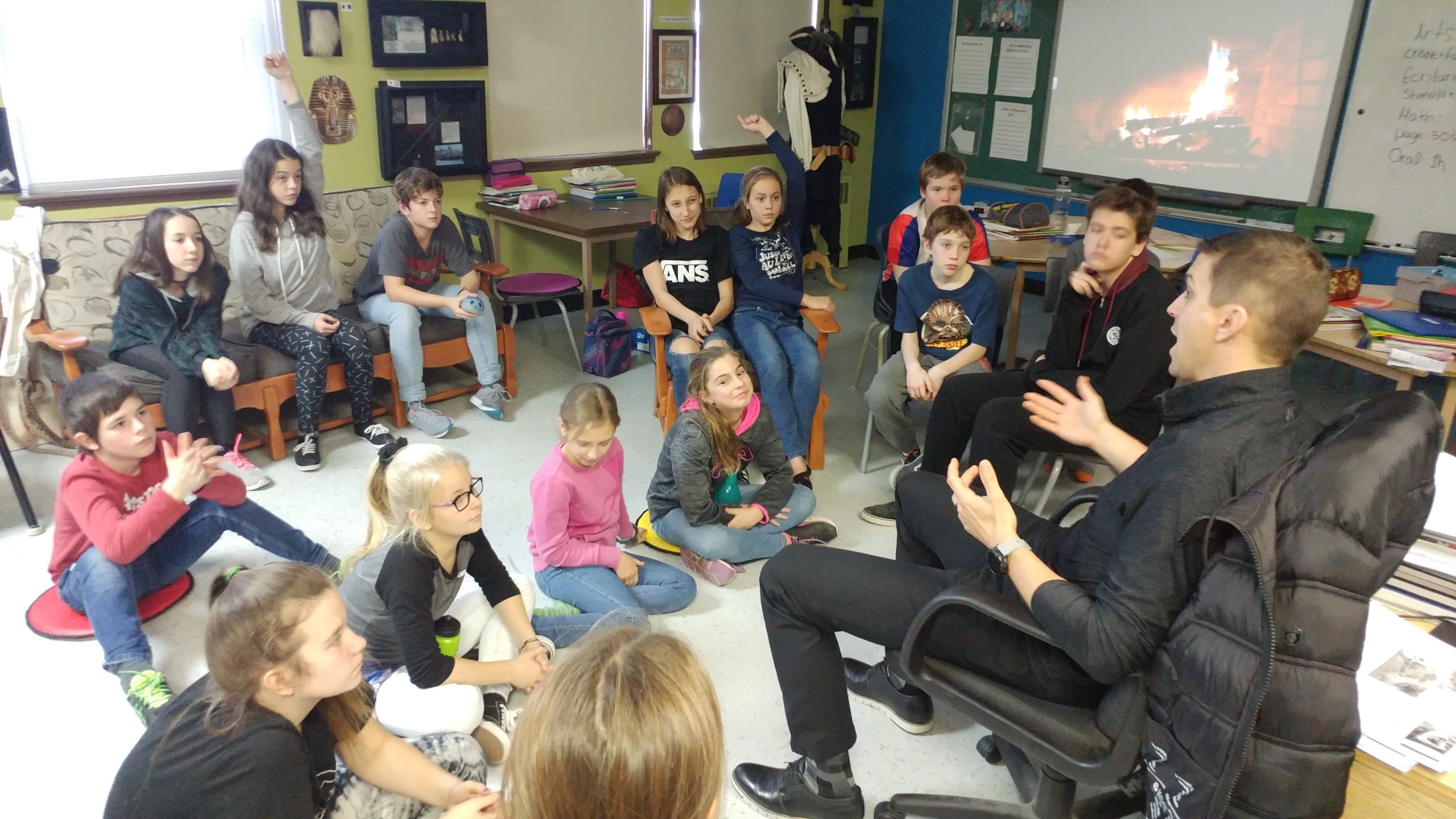 Les élèves avaient beaucoup de questions à poser à leur invité puisqu’ils ne l’avaient pas revu depuis qu’il avait arbitré au début de l’automne deux matchs en Chine opposant les Bruins de Boston aux Flames de Calgary.