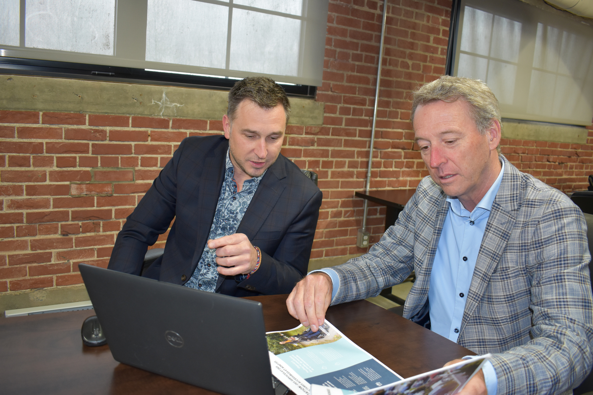 Le nouveau directeur du Service e développement économique de Shawinigan David Marcouiller en discussion avec son prédécesseur, Luc Arvisais qui vient de prendre sa retraite. (Photo L’Hebdo – Patrick Vaillancourt)