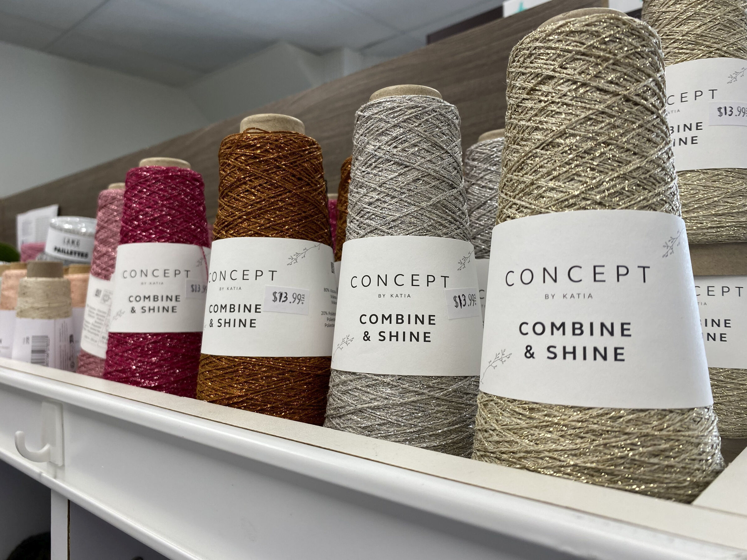 “Il y a beaucoup de sortes de laine, mais j’ai fait des ajouts. J’ai rentré pas mal de laine teinte à la main au Québec. Je suis maintenant le seul point de vente de fil à tisser dans la région. Avant, les tisserandes devaient se rendre à Plessisville pour en trouver.” En fait, en plus du fil à tisser, on retrouve du fil à broder, du fil à macramé, de la fibre à filer et à feutrer et tous les outils nécessaires pour les travailler.