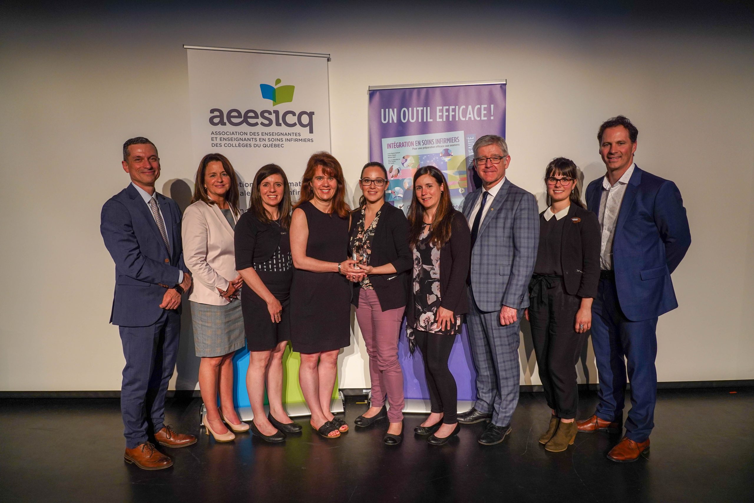 L’événement a eu lieu lors du 33e colloque annuel de l’Association des enseignantes et enseignants en soins infirmiers des collèges du Québec (AEESICQ) le 5 juin dernier devant plus de 250 enseignants provenant d’une quarantaine de collèges et de centres d’études collégiales. L’obtention de ces prix de reconnaissance pédagogique vient démontrer côté innovateur du département de Soins infirmiers du Collège Shawinigan et son rayonnement à travers toute la province.