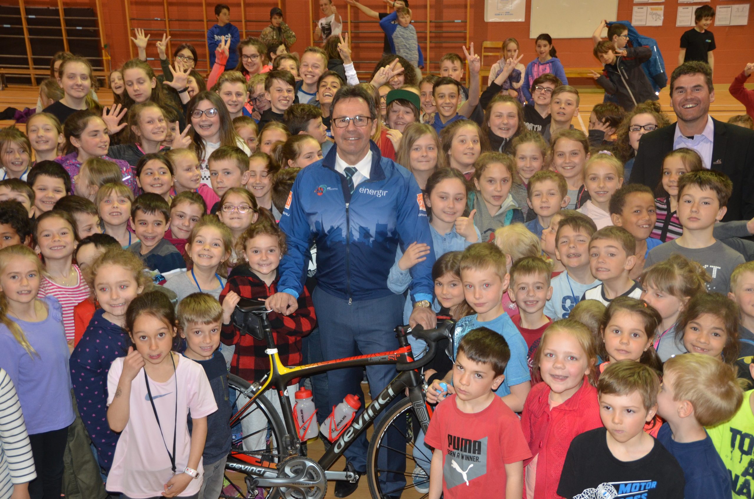 Devant les élèves de l’école réunis dans le gymnase, Michel Angers y est allé d’une confidence. «J’étais plutôt turbulent quand j’avais votre âge et que j’allais à l’école. Mais j’ai pu rester concentré en classe parce que je savais que je pouvais bouger pendant la récréation. Quand on est bien dans notre corps, on est bien dans notre tête aussi. J’ai toujours été actif, et quand j’ai été élu maire, ça aurait été facile de laisser tomber les activités physiques par manque de temps. Lorsque ce sera plus difficile pendant le GDPL, je vais penser à vous pour m’encourager.»