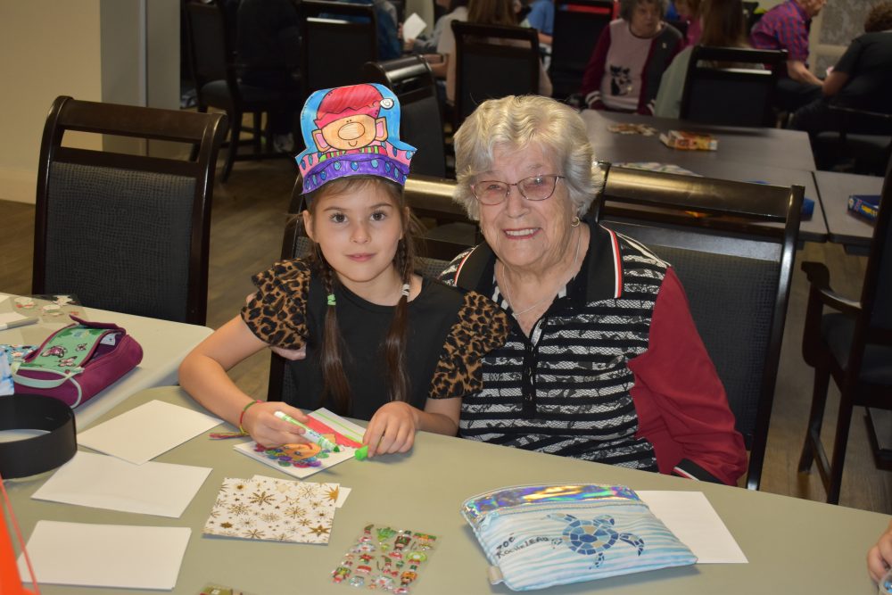 Mme Thérèse Léveillé a vécu un beau moment, elle qui a eu la chance de côtoyer son arrière-petite-fille Zoé en 2e année pendant l’activité de bricolage. “Je ne savais pas qu’elle allait être ici. C’est tellement une belle surprise!”, exprime l’arrière-grand-mère.