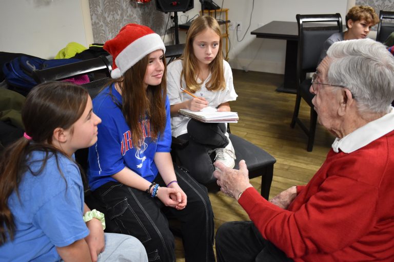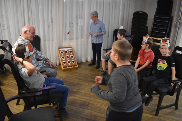 Certains jeunes jouaient aux poches avec des résidents, d’autres réalisaient du bricolage, tandis que les plus vieux de 6e année discutaient avec les aînés question d’en apprendre plus sur leur vie et ce qui forgeait leur quotidien d’autrefois.