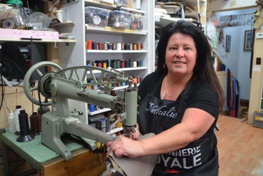 “J’avais étudié en couture à Val-Mauricie. Après quelques années à travailler à Montréal, mon père m’avait dit qu’il avait besoin de quelqu’un pour l’aider. Je l’ai essayé et je suis ici depuis 1989”, sourit Nathalie Blais, officiellement propriétaire depuis 2001. “J’ai grandi là-dedans. Quand j’étais petite, mon père me donnait des retailles de cuir et je m’amusais à fabriquer des bracelets ou à installer des boutons pression.”