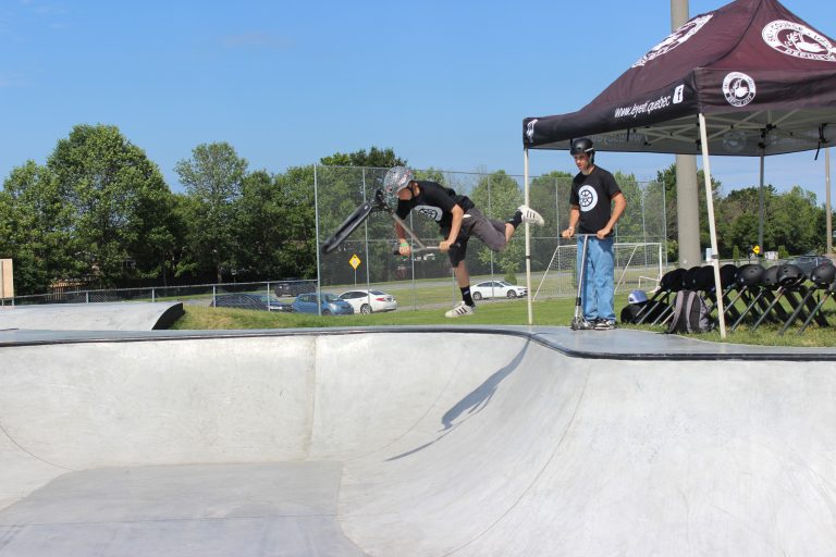 «Ça nous aide vraiment, parce qu’avant d’avoir un skateparc comme ça ici, je ne pouvais pas vraiment évoluer et améliorer mes figures. Je connais des gens qui avaient abandonné la trottinette à cause du manque de skateparc. Avant, il y avait juste le petit parc en métal [dans le secteur]. Maintenant, avec le béton et les meilleures rampes, j’ai des amis qui recommencent le sport», admet Jérémy Pagé, l’un des deux champions canadiens de trottinette présent lors de l’événement.