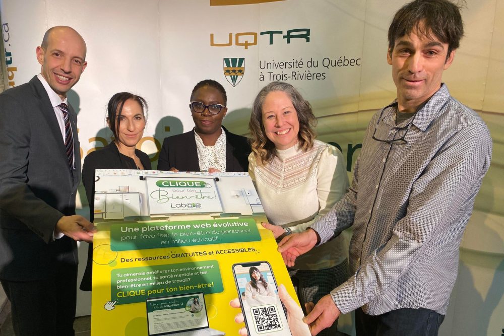 Cette plateforme accessible au www.uqtr.ca/Laboe se veut une collection d’outils destinés au développement d’une santé mentale positive et à l’optimisation du bien-être au travail. Elle est née d’une collaboration entre l’UQTR et le CIUSSS de la Mauricie-et-du-Centre-du-Québec, ainsi qu’avec les cinq centres de services scolaires de la région, des établissements d’enseignement privés et du réseau anglophone.