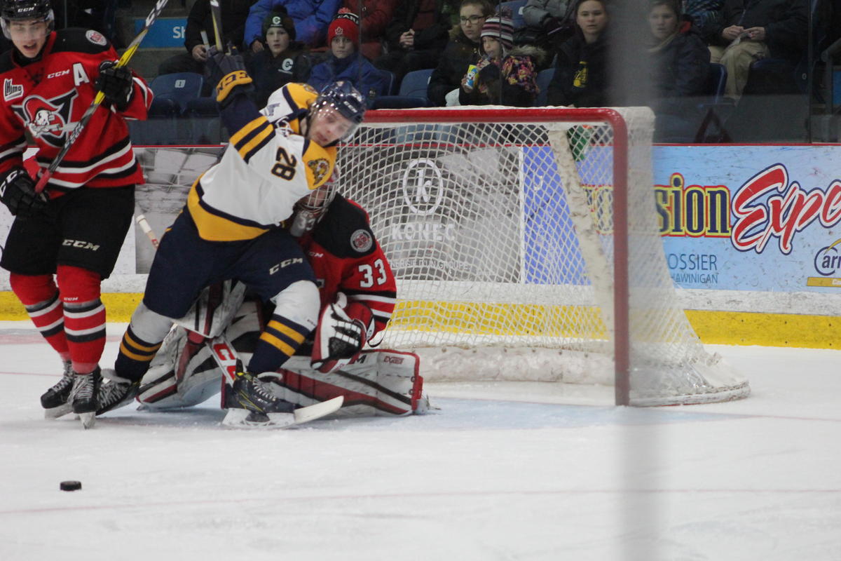 Dès la 5e minute de jeu, un revirement en zone défensive a permis à Andrew Shewfelt et à Jérémy Manseau de s’amener à 2 contre 1. La passe soulevée de Shewfelt était si parfaite que Manseau a seulement eu qu’à rediriger celle-ci derrière Mikhail Denisov.